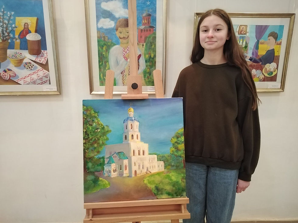 "My name is Polina, I am 9 years old. I am from the city of Kherson. My favorite hobby is painting. In my city, I studied at the art school. When the city was occupied we left to Ivano-Frankivsk, I continued painting. The idea with the painting "Daffodils" appeared unexpectedly, under the impression of the beauty of spring flowers, their sunny color and aroma.